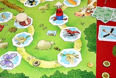 Contem 24 peças caminho, 1 banco, 12 cartas-foto, 1 figura Florian Flugel, discos cócó e 1 tabuleiro de jogo.
