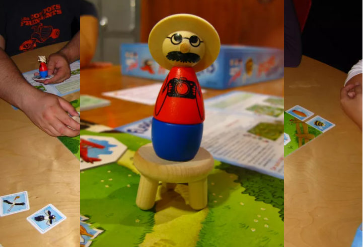 O objetivo é coletar o máximo de cartas com fotos usando a figura do jogo. Os temas dessas cartas também são representados nas peças do tabuleiro, sob as quais podem estar escondidas surpresas desagradáveis. Felizmente, o naturalista tem um banquinho de madeira onde pode colocá-lo no último instante para evitar que ele caia. Quem conseguirá tirar o máximo de fotos de todos os animais e objetos voadores antes que os sapatos de Florian fiquem arruinados?