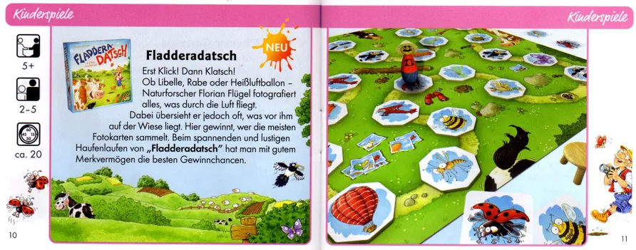 No jogo Fladderadatsch, os jogadores movem a figura magnética de Florian Flügel pelo tabuleiro, tentando evitar que ele pise nas peças escondidas (também magnéticas) de excrementos de cavalo e vaca.